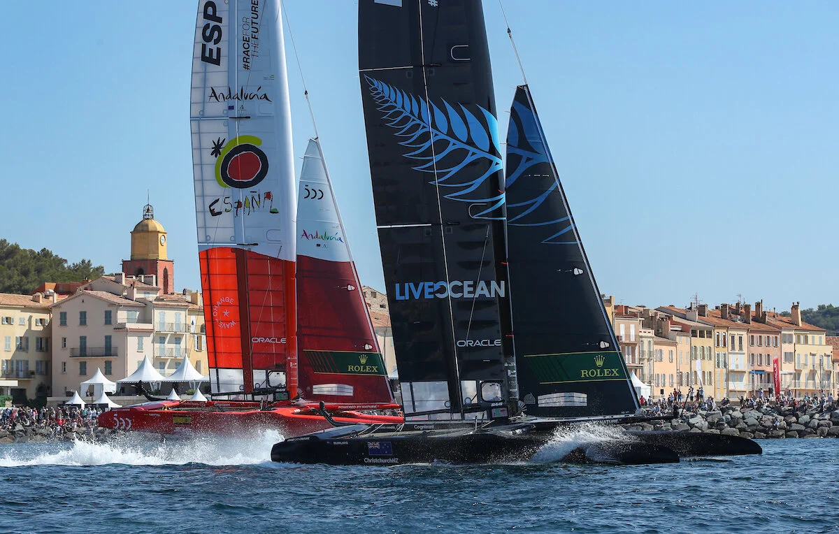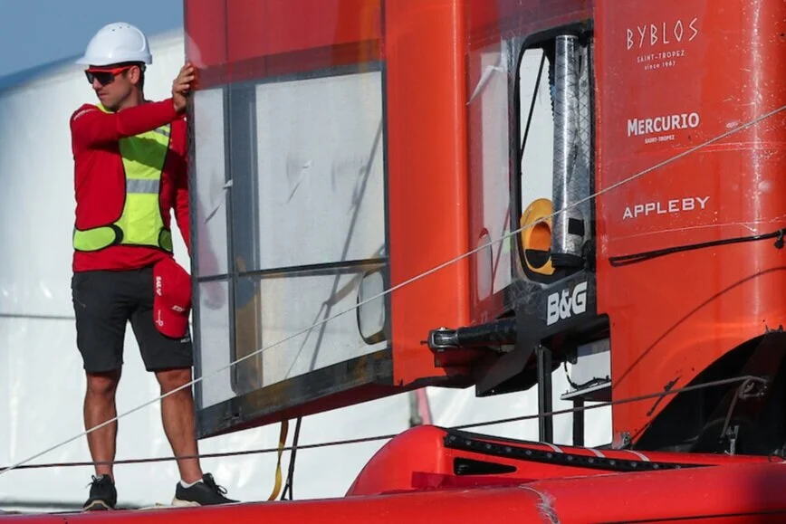 Typically, we’d get an additional day training to find our rhythm before the practice racing starts. To make things trickier, Friday conditions were 15 - 20kts with a nice large Mediterranean swell. The F50’s love flat water, as soon as a swell or waves kick up, they become extremely difficult to sail downwind.